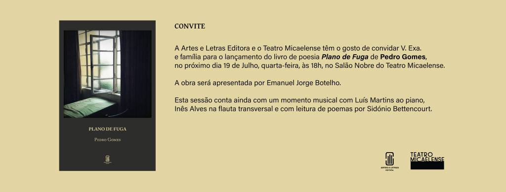 Pedro Gomes – O título remete para um poema sobre o amor que consta no livro, em que o verso final refere que não há plano de fuga para o amor. “Plano de Fuga” enquadra também esta obra com a belíssima fotografia de um grande fotógrafo português, Daniel Blaufuks, a janela entreaberta, em que se adivinha o que está do outro lado, uma mesa despojada do lado dentro de uma casa. No fundo, o título acaba por ser uma síntese da poesia, uma poesia de geografia, de sínteses, de percursos e de silêncio, aliás como são sempre as propostas que os poetas oferecem aos seus leitores.