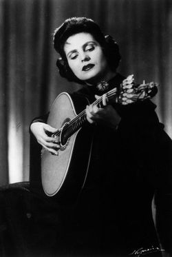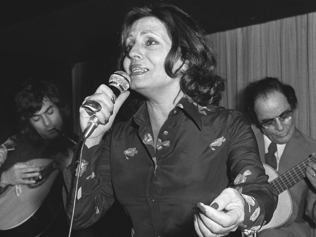 1940 – Acts in several fado houses, where she invents the fado singer dressed entirely in black. By the influence of José de Melo, she starts singing at Café Luso and Solar da Alegria (fado houses in Lisbon), becoming the highest-paid fado singer in the country. She debuts in the theatre with the revista (sort of vaudeville theatre) Ora vai tu.