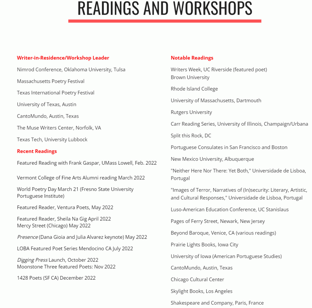 Please look at her astonishing number of interviews in the Portuguese-American Journal. A collection worthy of a book publication