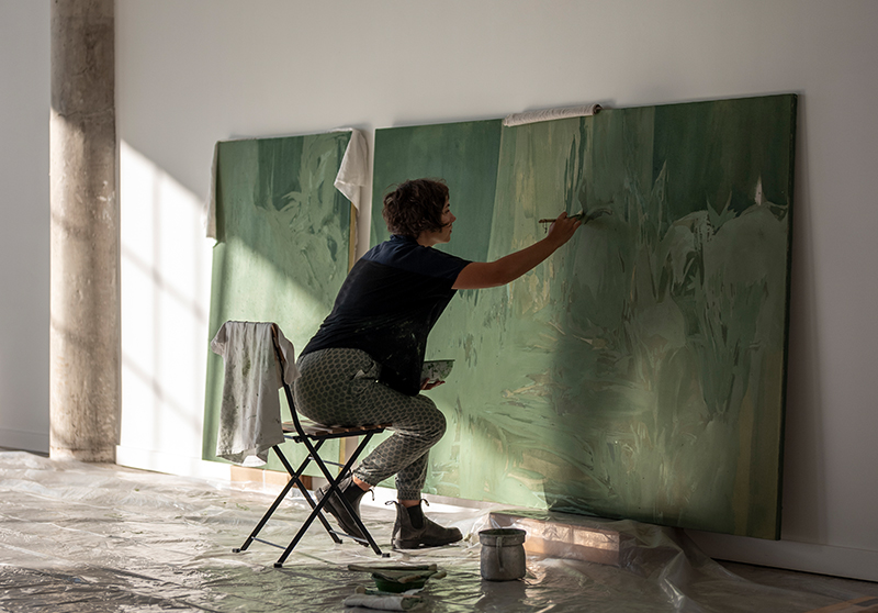 Filipa Tojal (1993, Porto, Portugal) is a visual artist working primarily in painting. Filipa holds a BA in Fine Arts from the Faculty of Fine Arts of Porto and completed a Master’s in Painting at Tokyo University of the Arts. She has lived and worked in Japan for four years on a fully-funded scholarship from the Japanese Government. While using Western and Eastern techniques and questioning the differences between these two worlds, she embraces a visual and meditative process, having as her poetic and visual influence the changing surrounding scenarios. Filipa has exhibited her work solo and collectively in Europe, Japan, and Australia and has participated in artist-in-residency programs throughout the globe, such as in France, India, Indonesia, Germany, Portugal, Australia, and the UK.