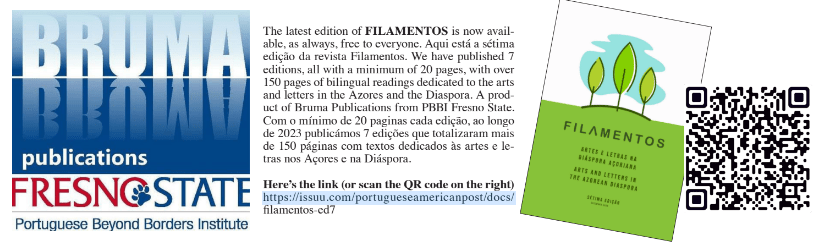 Bruma Publications from PBBI-Fresno State would like to thank Roberto Ávila, artistic director and designer for the newspaper, for his kindness and his support of our work at Bruma Publications by putting forth this wonderful presentation of our books, with a QR code to allow the readers of the Tribuna Portuguesa an easy way to see and order our books. We are very grateful.