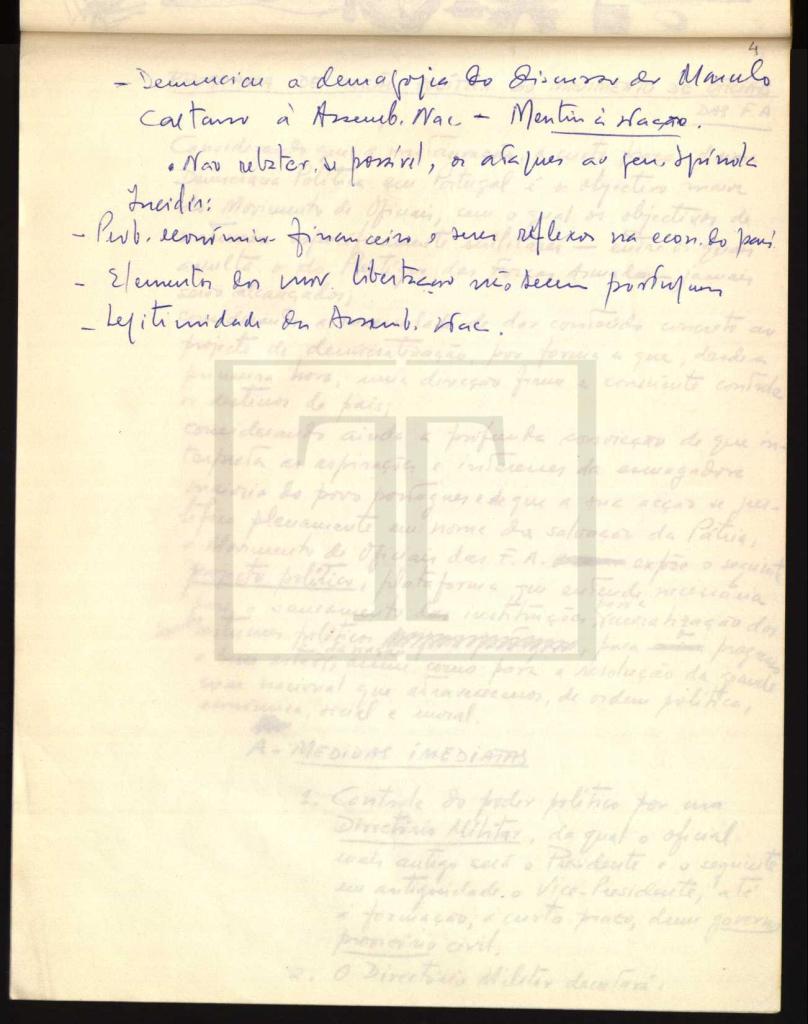 To illustrate the process of drawing up the MFA program, today I bring you some pages from the notebook of then Major Melo Antunes, its co-author and primary drafter, kept at the National Archive of Torre do Tombo (https://digitarq.arquivos.pt/details?id=4515056). In these pages, Melo Antunes wrote by hand, in March 1974, an exhortation to the Movement’s comrades and what he then called the “Political Action Program of the Air Force Officers’ Movement.”