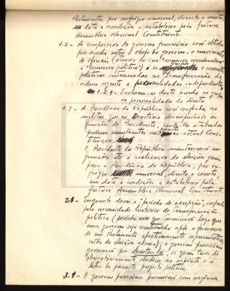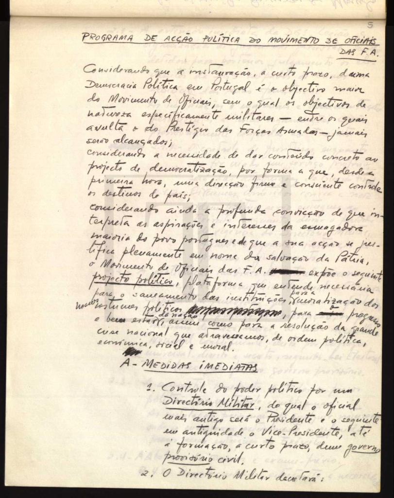 It should be noted that what was cut and altered by Spínola on the night of April 25-26 had already been included in the “Political Action Program of the Air Force Officers’ Movement” handwritten by Melo Antunes.