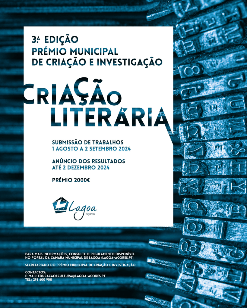 Lagoa Municipal Council is going ahead with the 3rd edition of the Municipal Prize for Creation and Research, which, like the 1st edition, is dedicated to literary creation. This competition, promoted by the municipality, aims to award an annual prize to the author or authors of the best research on municipal themes or the best literary creation in this year’s edition. With this project, the municipality aims, among other things, to stimulate and enhance writing habits, promote creative writing, and publicize new authors. The literary works competing for the prize can be of various genres, such as poetry, narrative fiction, drama, comics, and children’s works.