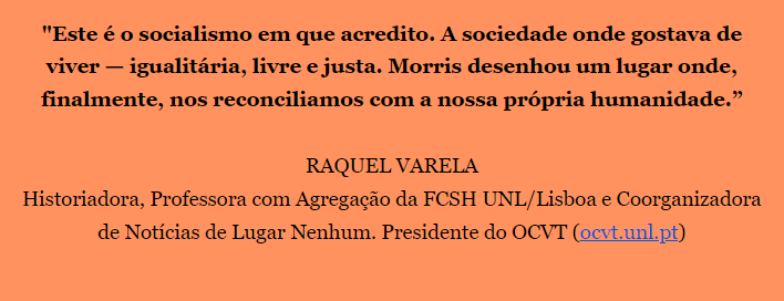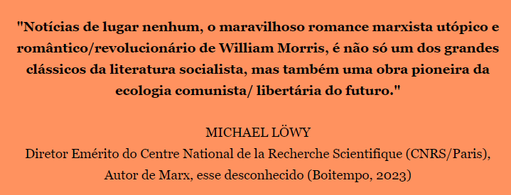 | “News from Nowhere or An Epoch of Rest” (1890) é o romance mais conhecido de William Morris, activista socialista, romancista, poeta, tradutor e artista inglês. Foi agora traduzido, pela primeira vez, para Português de Portugal, por António Simões do Paço, como “Notícias de Lugar Nenhum ou Uma Época de Tranquilidade — Um Romance Utópico”, e que conta com a coordenação de Roberto della Santa e de Raquel Varela. Este livro surgiu da necessidade de William Morris em responder à novela utópica “Looking Backward”, do norte-americano Edward Bellamy, que fez sucesso na época (1889). Esta era de inspiração militarista e tecnocrática e assumidamente nacionalista. “Notícias de Lugar Nenhum” seria, então, uma espécie de contraproposta. No romance utópico de Morris, a sociedade da Inglaterra do ano 2102 seria resultado de uma revolução socialista. O título é, sem dúvida, uma homenagem a Thomas More e seu célebre livro “Utopia”, de 1518, — que significa, em grego, “lugar nenhum” –, que apresenta uma ilha cujos habitantes haviam estabelecido uma sociedade de tipo comunista. Morris imagina uma sociedade igualitária e livre, na qual a produção ganhará novamente um carácter artesanal, graças a máquinas “infinitamente superiores às do passado”, que libertam os indivíduos das tarefas tediosas e desagradáveis para poderem se dedicar a uma actividade humana livre e criadora. O romantismo, corrente artística em voga no século XIX, manifesta-se também em “Notícias de Lugar Nenhum”, em que se busca uma vida social em harmonia com a natureza, como nas formas comunitárias do passado. Para este romancista inglês, isso não seria possível abandonando a sociedade corrupta e estabelecer uma nova à margem, mas sim através da transformação da própria sociedade já existente, graças a uma acção colectiva das classes oprimidas. Apesar de escrito em 1890, este livro ainda é muito moderno devido são os seus valores: liberdade, igualdade, fraternidade, democracia, solidariedade, em que cada um pode trilhar o seu caminho com o mínimo de constrangimentos, sendo considerado, portanto, um clássico da literatura. (Nota aos leitores enviada pela editora e livraria Letras Lavadas) |