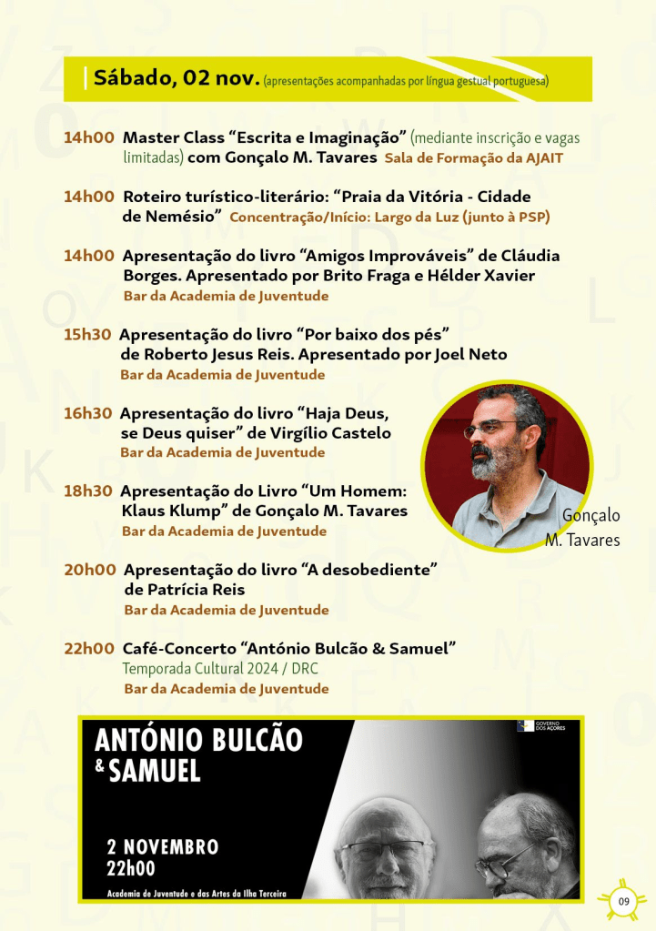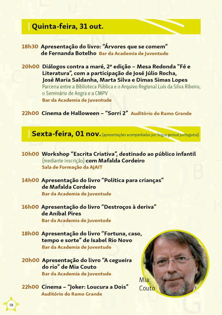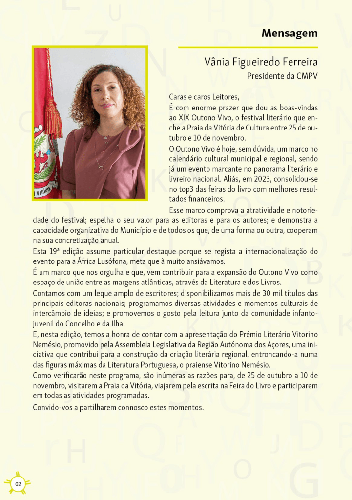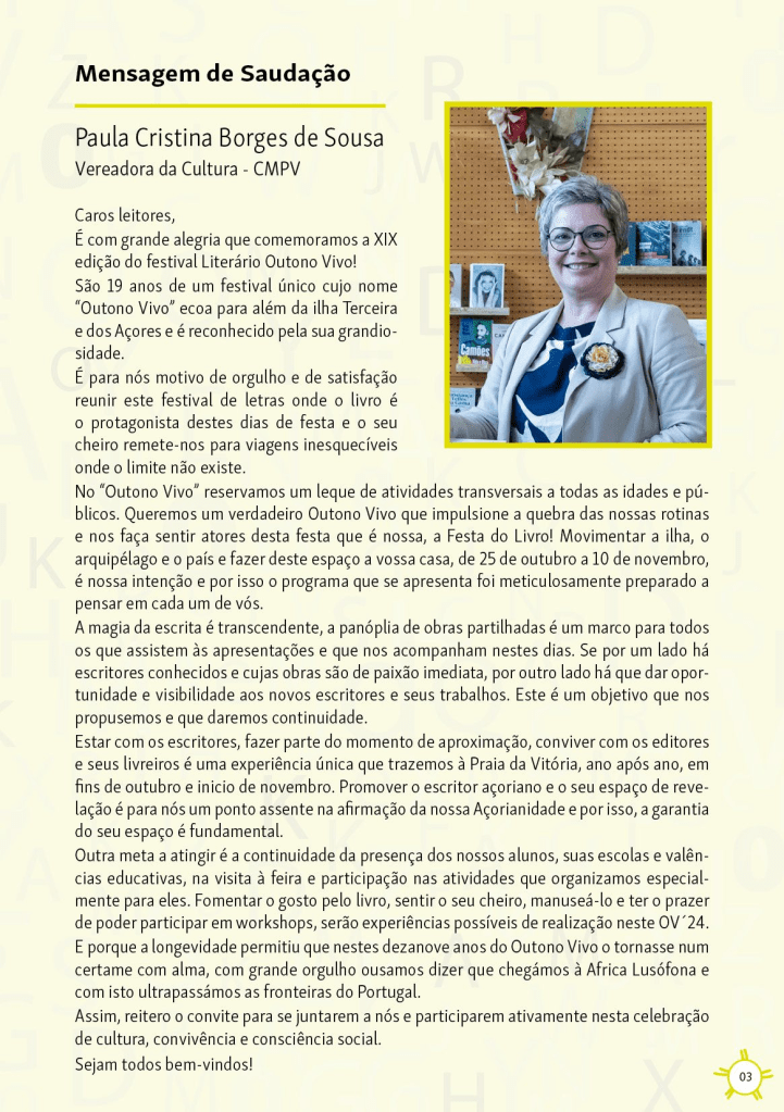 Parabéns a toda a comissão do Festival Literário Outono Vivo por mais uma evento que certamente será mais um sucesso para a Praia da Vitória, a ilha Terceira e a Região Autónoma dos Açores. Filamentos (artes e letras na diáspora açoriana) terá vários segentos dedicados a este evento.