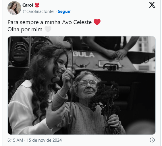 Carolina Fontel, Celeste Caeiro’s granddaughter, confirmed her grandmother’s death on social media this Friday. In it is a photo of Celeste at the celebrations for the 50th anniversary of April 25th this year, in Lisbon.