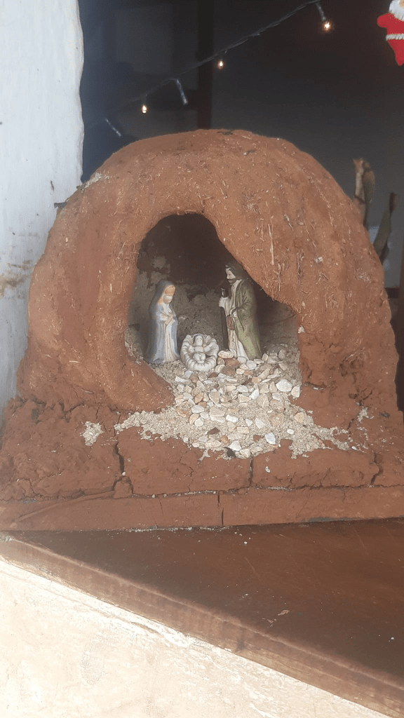 O presépio foi feito do ninho abandonado do João-de-Barro, uma ave do cerrado e floresta atlântica em São Paulo, Brasil. O artista é meu primo Horácio Arruda. Os Arrudas, vieram de Ribeira Grande, Açores, no século 18 para Santos. Sou a sexta geração. Meus avós paternos falavam dialeto caipira misturado com Portugues antigo. Minha avó paterna era uma mulher tradicional das Ilhas Atlânticas.