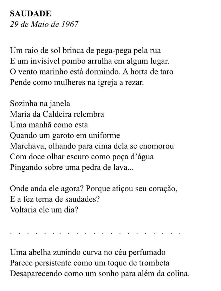 We thank Poet RoseAngelina Baptista for these outstanding translations.