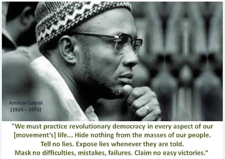 One aspect of Amílcar Cabral’s thinking that most Portuguese will not be aware of, or at least not aware of, relates to his opinion on the end of the fascist regime in Portugal and the liberation struggle, about which he says the following: (…) We are absolutely convinced that if a government were installed in Portugal tomorrow that was not fascist, but democratic, progressive, recognizing the rights of peoples to self-determination and independence, our struggle would have no reason to exist. Therein lies the intimate link that can exist between our struggle and the anti-fascist struggle in Portugal, but also, we are absolutely convinced that, to the extent that the peoples of the Portuguese colonies move forward with their battle and completely free themselves from Portuguese colonial domination, they will be contributing in a very effective way to the liquidation of the fascist regime in Portugal. (…).