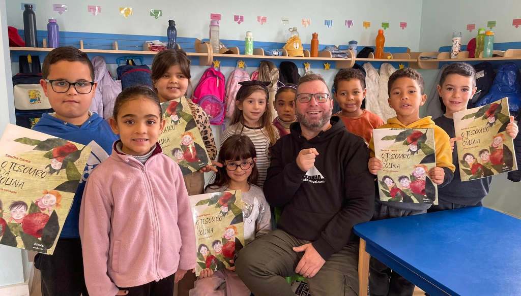 On one of his visits to Italy, artistic director and publisher Terry Costa came across the book “Il Tesoro della Collina” by Sandra Dema, with illustrations by Elvezia Cavagna. He was dazzled by the images and text and decided to translate it into Portuguese and publish it with Néveda Ent., based on the island of Pico, Azores.