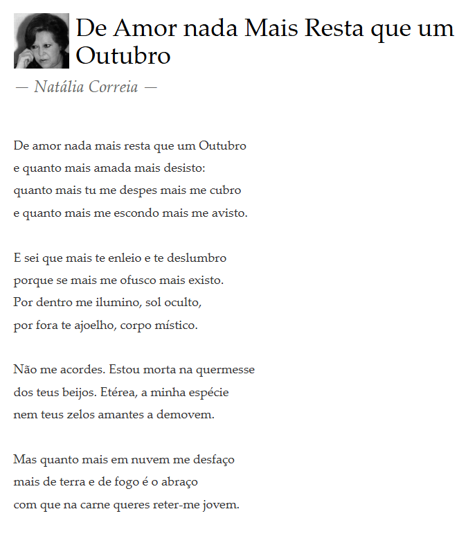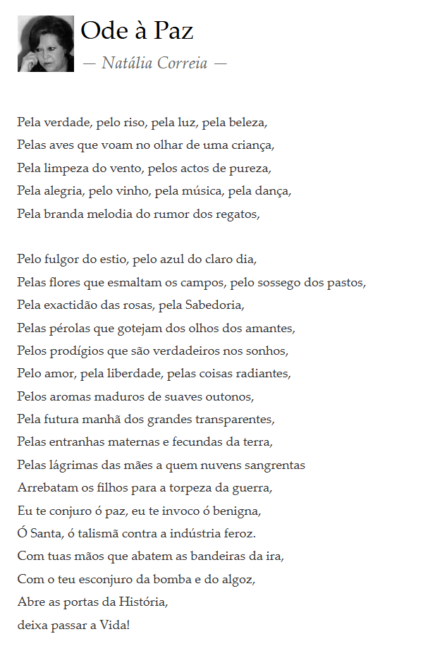 A poesia de Natália Correia e Natália Correia lendo a sua poesia. Aqui ficam alguns poemas de Natália Correia e a poetia (como ela gostava que a tratasem) a ler a sua poesia na prestigiosa Biblioteca do Congrsso aqui nos EUA.