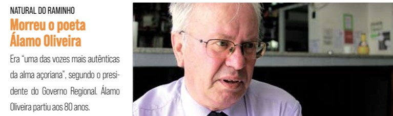The Angra do Heroísmo City Council declared a day of municipal mourning (yesterday) for the death of Álamo Oliveira, whom it described as “a distinguished poet, writer, and major figure in Angra and Azorean culture.”