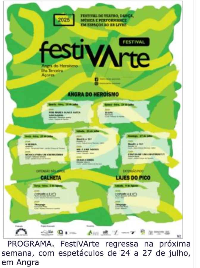 The idea for this festival emerged in 2020, during the pandemic, and aimed to bring shows to the public, as they were, in a way, barred from concert halls. Bringing shows to outdoor spaces not only revived the performing arts, which had been dormant at the time, but also introduced a new dynamic of cultural interaction to the city of Angra do Heroísmo, particularly in the realm of the performing arts, which had been non-existent until then. The first editions were called “Angra do Heroísmo Performing Arts Short Film Festival,” but for legal reasons, we had to change the name to “festiVArte.” We kept the essence, but improved the cultural offering to better meet the sociocultural needs of the festival’s partners and sponsors.