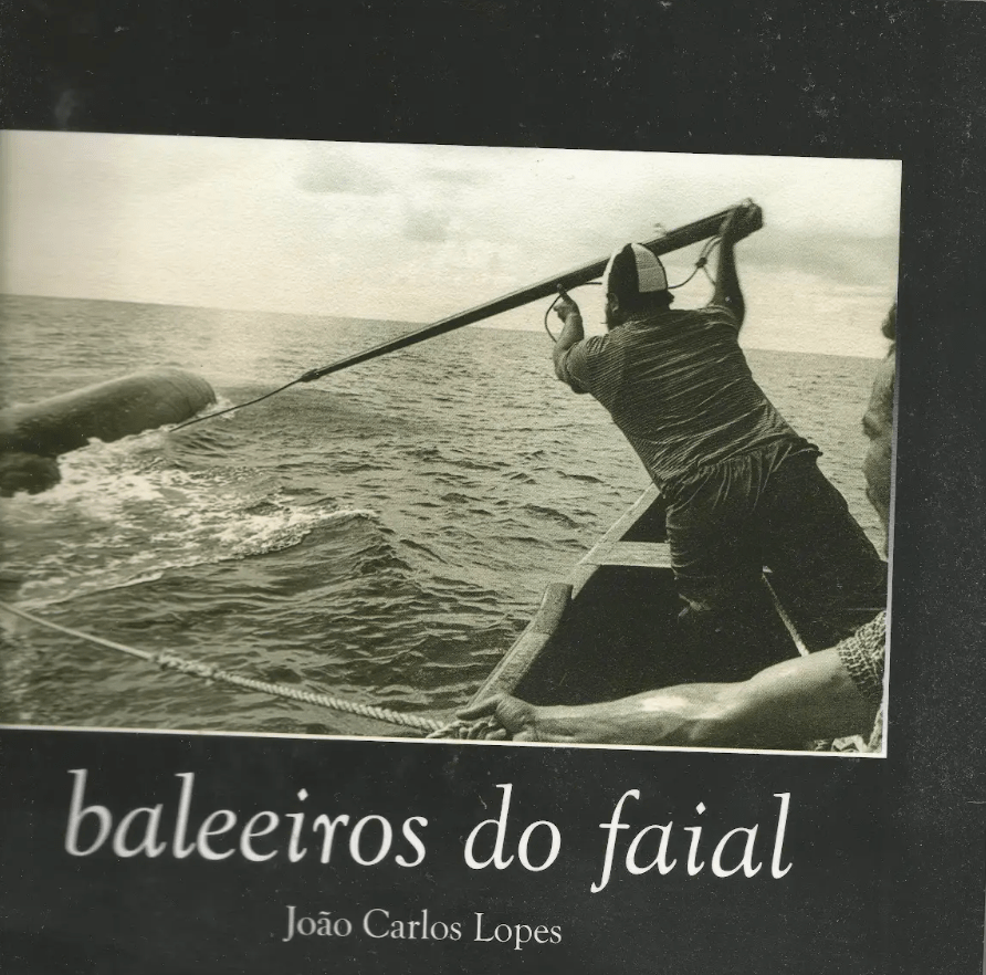 João Carlos Lopes (n.1959) assina este livro/álbum de 155 páginas, 24 fotografias, um quadro de Juri Arrak, dois desenhos técnicos e uma gravura do Museu de New Bedford. Trata-se do trabalho final do Curso de Antropologia da Universidade Nova de Lisboa resultante de uma estadia na Horta, Ilha do Faial, no Verão de 1982. A baleia é o primeiro animal a ser referido nas páginas da Bíblia: «Um dia antes do homem e depois do céu e das estrelas, da luz e das trevas, Deus criou as baleias. Era a tarde do quarto dia.» O poema «Ilha» de Pedro da Silveira está na página 34: «Só isto:/O céu fechado, uma ganhoa pairando. Mar. E um barco /na distância: olhos de fome a adivinhar-lhe à proa, Califórnias perdidas de abundância». À porta do Café Silva, com uma cerveja na mão, um baleeiro diz : «Gosto mais das baleias que da minha mulher e dos filhos. Eu gosto deles mas o meu coração, o meu gosto, está nas baleias, é verdade, o meu coração está lá.» Os mestres Carlos Eugénio, José Rufino e Carlos Serpa falam das suas vidas, das baleias e do mar, das mulheres e da religião, do seu passado e do seu presente, da democracia e da política.Os depoimentos vão da página 91 à 135.Um deles (José Rufino) acertou na previsão: «Tenho cá para mim que esta vida vai a acabar…» Fica esta memória futura porque como diz Octávio Paz «o passado não passou, nem sequer ainda é passado». (Texto da contracapa -Manuela Ivone Cunha, Fotos – Luís Pavão e Abílio Dias, Grafismo- Rosa Moita. JCF