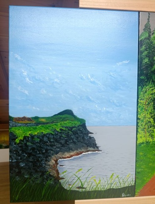 Yes, this is my first exhibition, and it’s part of Dar Cena – 8th Northwest Theater Exhibition. I’ve always seen painting as an intimate form of expression, almost like a personal diary made up of colors and brushstrokes. Now that we can share this journey with the public, it is both a challenge and a great joy. The exhibition “Between Land and Sea” is born of my deep connection to the Azorean territory, where the horizon never ends, where on one side is the bravery of the land and on the other the vastness of the ocean. I hope that visitors can feel directed to these places and recognize something from their own experience or discover a new perspective on the landscape that surrounds us.