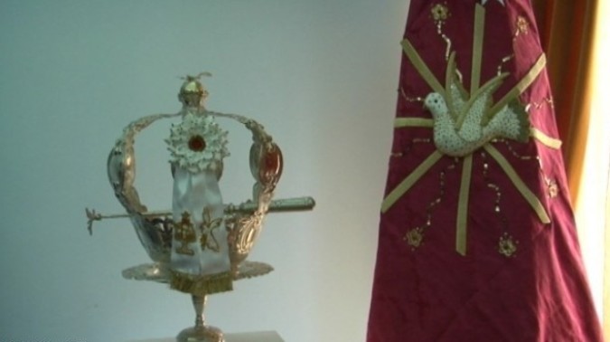 Então, em honra do Divino, são mortas reses, sendo que parte da carne era outrora distribuída em “esmolas” pelos pobres (hoje, os mais carenciados) e a outra, destinada às “sopas” (refeição propriamente dita) oferecida a familiares, amigos e convidados, após uma semana de terço (cantado ou rezado) à coroa do Espírito Santo, colocada em altar próprio em casa do mordomo (a pessoa que faz a promessa) ou no “império” (espécie de ermida onde se realizam parte das cerimónias das festas do Espírito Santo e nas quais, durante este período, se expõem as insígnias do culto: coroas, bandeiras e varas).