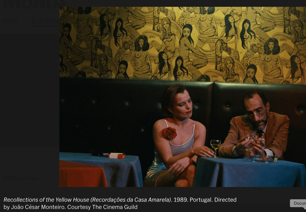 Since October 16th and through November 6th, the Museum of Modern Art has had a retrospect of the Portuguese filmmaker, João César Monteiro. Besides the famed Manoel de Oliveira, Monteiro is one of the most influential Portuguese directors. While Oliveira is associated with neorealism and literary influences, Monteiro is associated with surrealism, anarchy, and “perverted mysteries”. Even without political implications, Monteiro knew how to push people’s buttons. He famously enraged audiences and critics with his film Branca de Neve (Snow White), a movie that is mainly just a black screen and allegedly cost hundreds of thousands of euros from the Portuguese government to make. I was lucky to watch his most acclaimed film in this retrospective, Recordações da Casa Amarela (Recollections of the Yellow House).