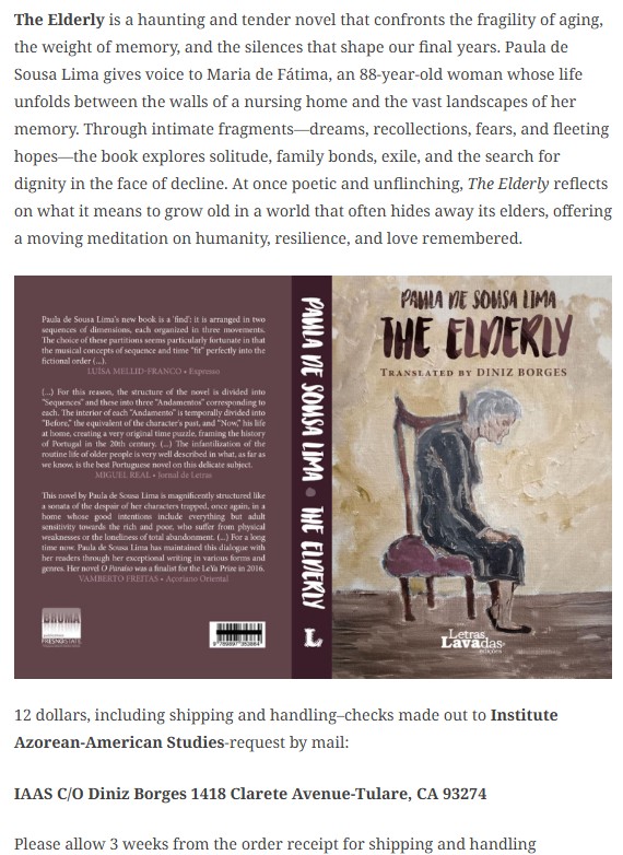 NR-para os nossos amigos aqui na diáspora, a escritora Paula de Sousa Lima tem um dos seus livros publicados em inglês pela Bruma Publications/Letras Lavadas. Podem comprar o livro aqui nos EUA e no Canadá através do IAAS — eis a informação. Uma leitura fabulosa e uma boa prenda para os vossos filhos, netos e amigos que não leem em português.