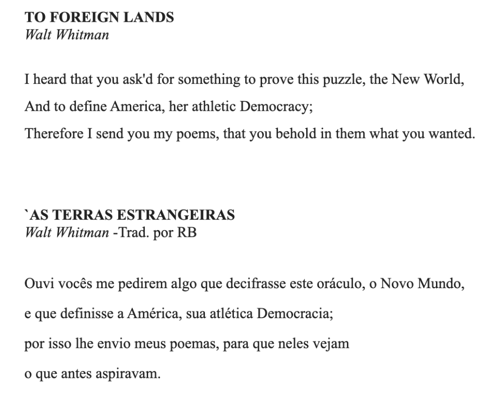 Classical Poems from the American and Anglophone Tradition in the Original English and in Portuguese Re-creation by RoseAngelina Baptista – Poemas Clássicos da Tradição Americana e Anglófona no Inglês Original e na Recriação Portuguesa de RoseAngelina Baptista