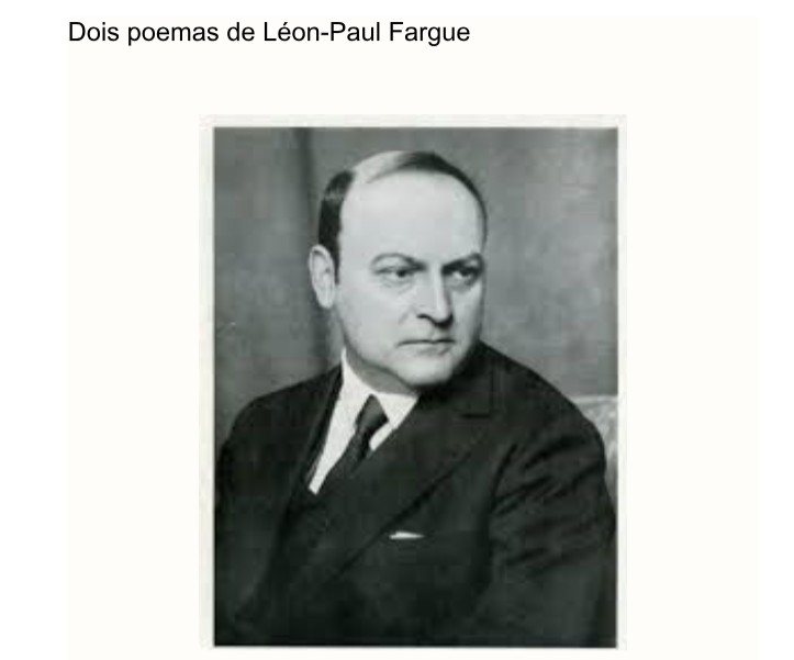 O Fargue que sobre si mesmo referiu : “J’ai joué ma vie sur la poésie” e “Je