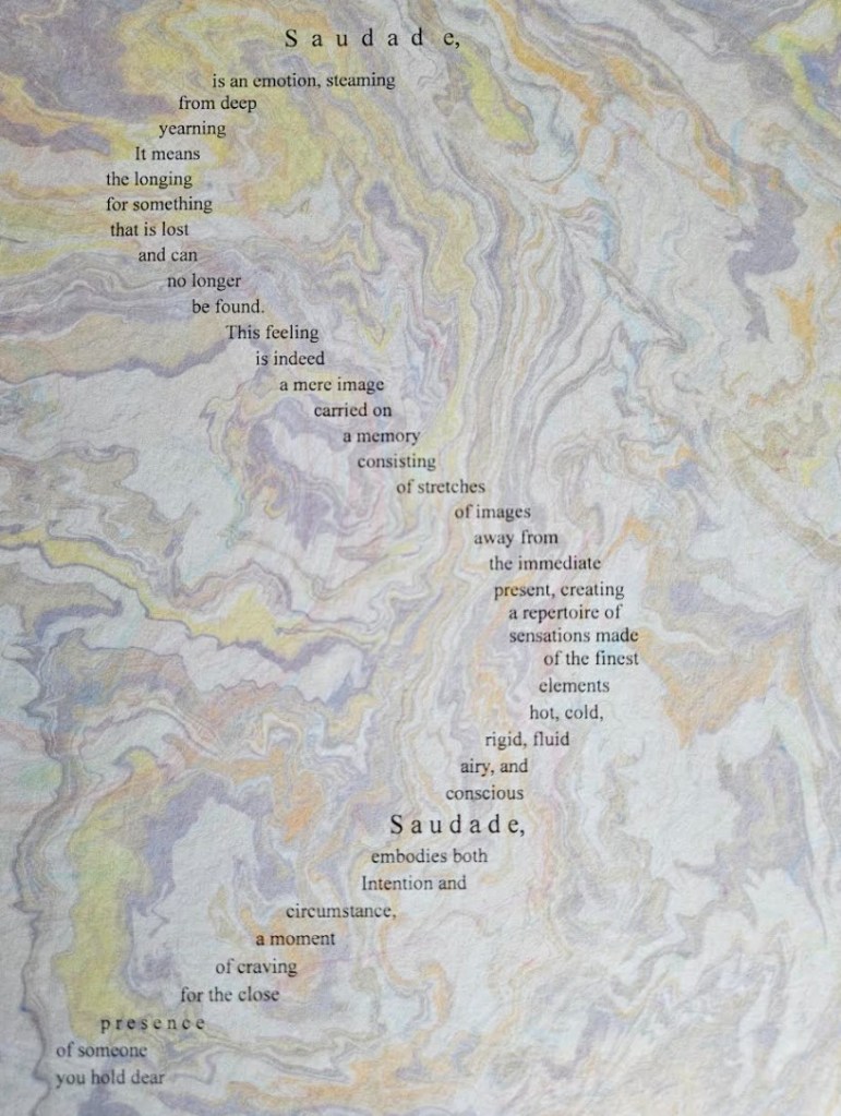 Saudade is memory that refuses to fade, love that outlives departure, presence persisting within absence. It is not merely longing; it is endurance. It remembers those who have gone, those who remain distant, those who once were and still are, in another register of being. It is a private act of tribute, shaped by whispered names, recurring images, and moments that ache even as they glow.