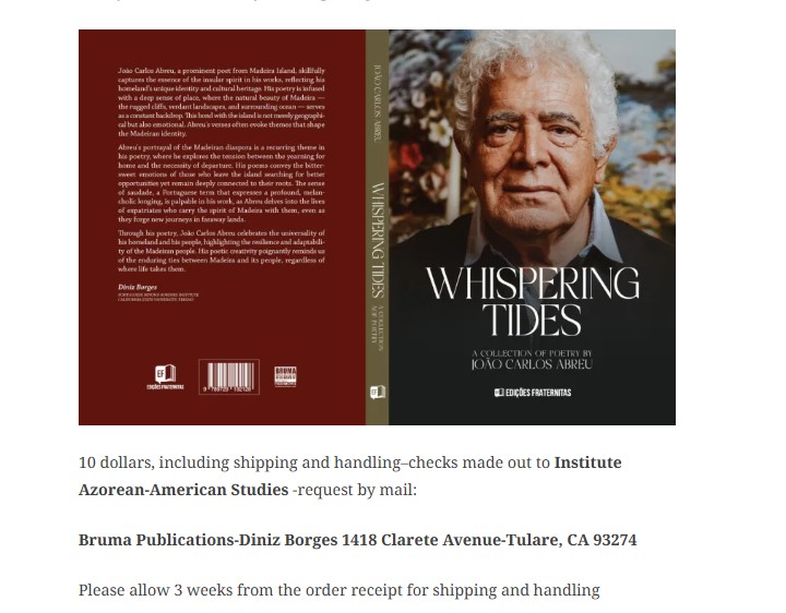 Whispering Tides gathers the lyrical voice of João Carlos Abreu, one of Madeira’s most enduring poets, in an English translation by Diniz Borges. Across decades of writing, Abreu’s poetry traces the pulse of island life—the sea that both shelters and exiles, the mountains that guard memory, the solitude of departure, and the resilience of return. His verses embrace love, freedom, longing, and the universal desire for connection, carrying the Madeiran spirit into a broader human landscape. With imagery steeped in waves, roads, and voices both personal and collective, Whispering Tides is a testament to poetry’s ability to anchor identity while opening it to the world.