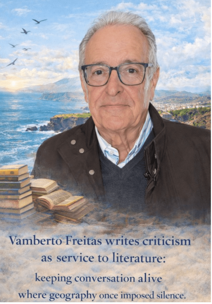 For more than three decades, Vamberto Freitas has practiced literary criticism as a form of sustained attention—patient, rigorous, and ethically alert. His work has traced the quiet, often overlooked trajectories of writers shaped by migration, insularity, and memory, especially those of American and Canadian authors with roots in the Azores. At seventy-five, his critical legacy stands not as a monument but as an ongoing conversation: a life of letters placed in the service of literature itself, where reading becomes an act of responsibility and criticism as a way of listening deeply to voices dispersed across geographies, languages, and generations.
