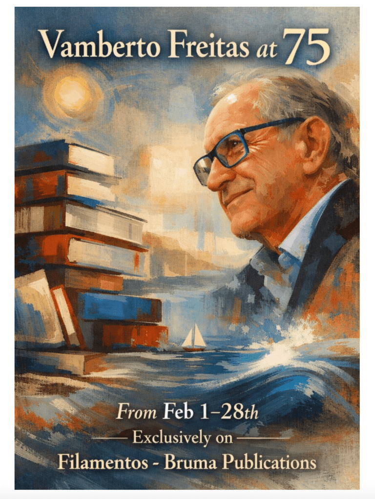 Through this February series, Filamentos – arts and letters seeks to celebrate the life and work of Vamberto Freitas by foregrounding criticism as a practice of care, rigor, and continuity. By publishing daily reflections, excerpts, and critical engagements, this initiative reaffirms Filamentos’ commitment to literature that crosses borders, sustains dialogue between islands and continents, and recognizes reading as an ethical act—one capable of holding dispersed voices in thoughtful, enduring relation.