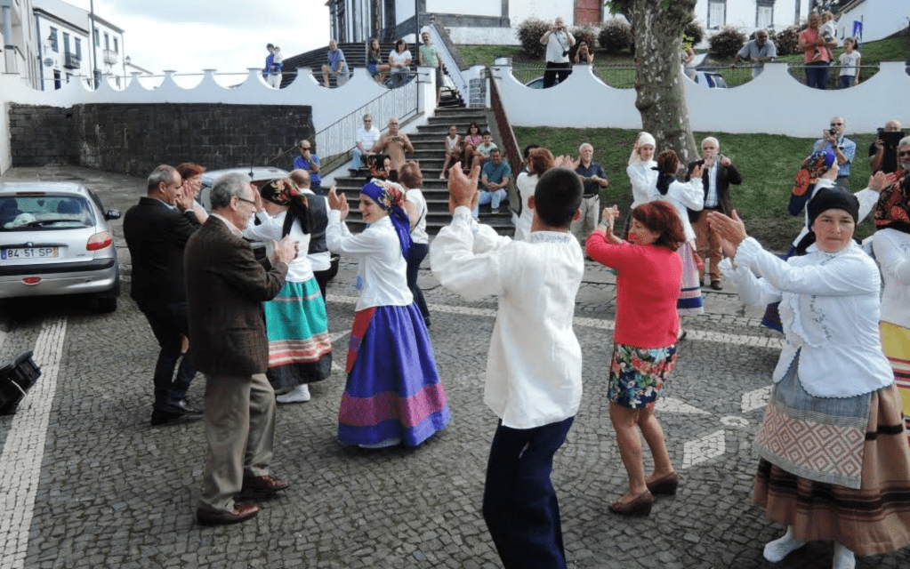 José (second man from left) dancing with the local folkloric group in his native Lomba da Maia, São Miguel, on October 1, 2016. Photo by Katharine F. Baker.