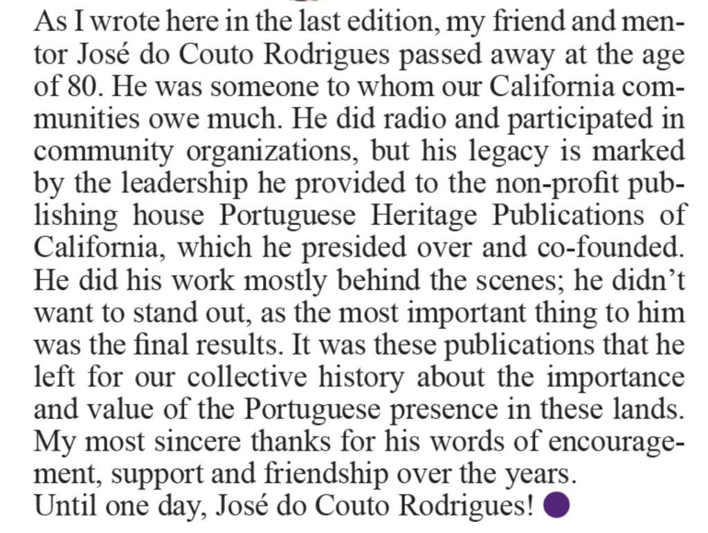 March 12, 2026March 12, 2026 Diniz Borges Remembering José do Couto Rodrigues on Portuguese Immigrant Week in California, 2026 Share this: Share on X (Opens in new window) X Share on Facebook (Opens in new window) Facebook More Share on LinkedIn (Opens in new window) LinkedIn Share on WhatsApp (Opens in new window) WhatsApp Like Loading... Related