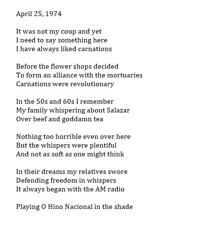 Um poema de Sam Pereira em tradução. Here is the translation into Portuguese by Diniz Borges. Sam Pereira’s book, The Marriage of the Portuguese, has been translated into Portuguese by Luisinha MiraCorrea and is under revision, with the hope of publication in Portuguese in the near future.