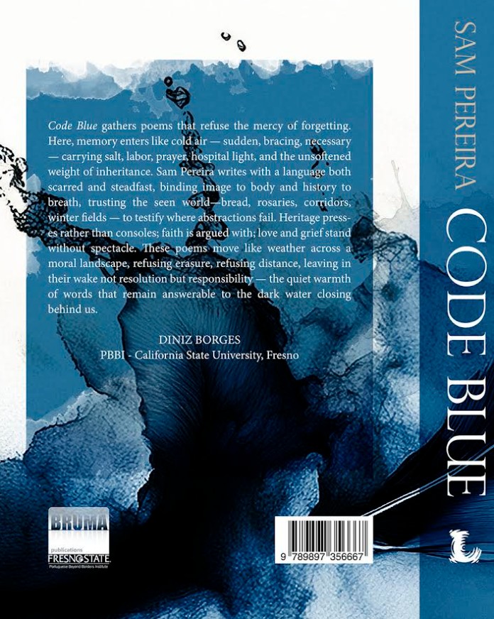 This poem is from Sam Pereira’s new Book, Code Blue, published by Letras Lavadas and Bruma Publications. The book will be available soon here in the US and Canada.